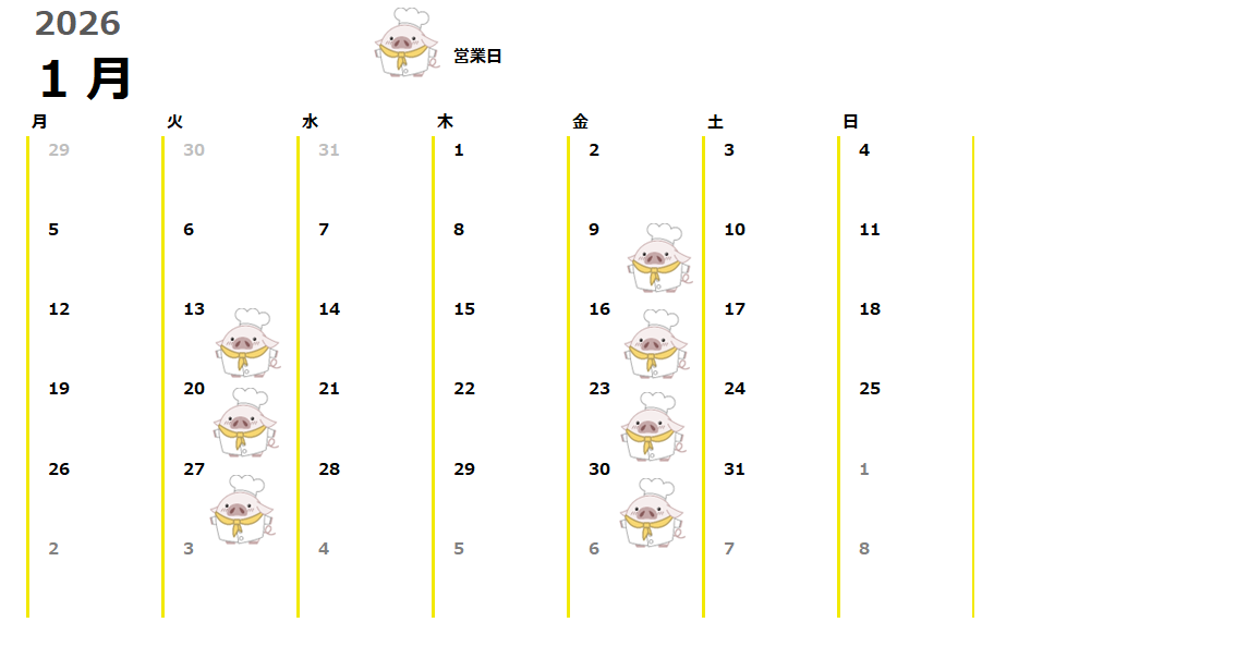 ぶたの駅 2026年1月営業日のお知らせです!!
